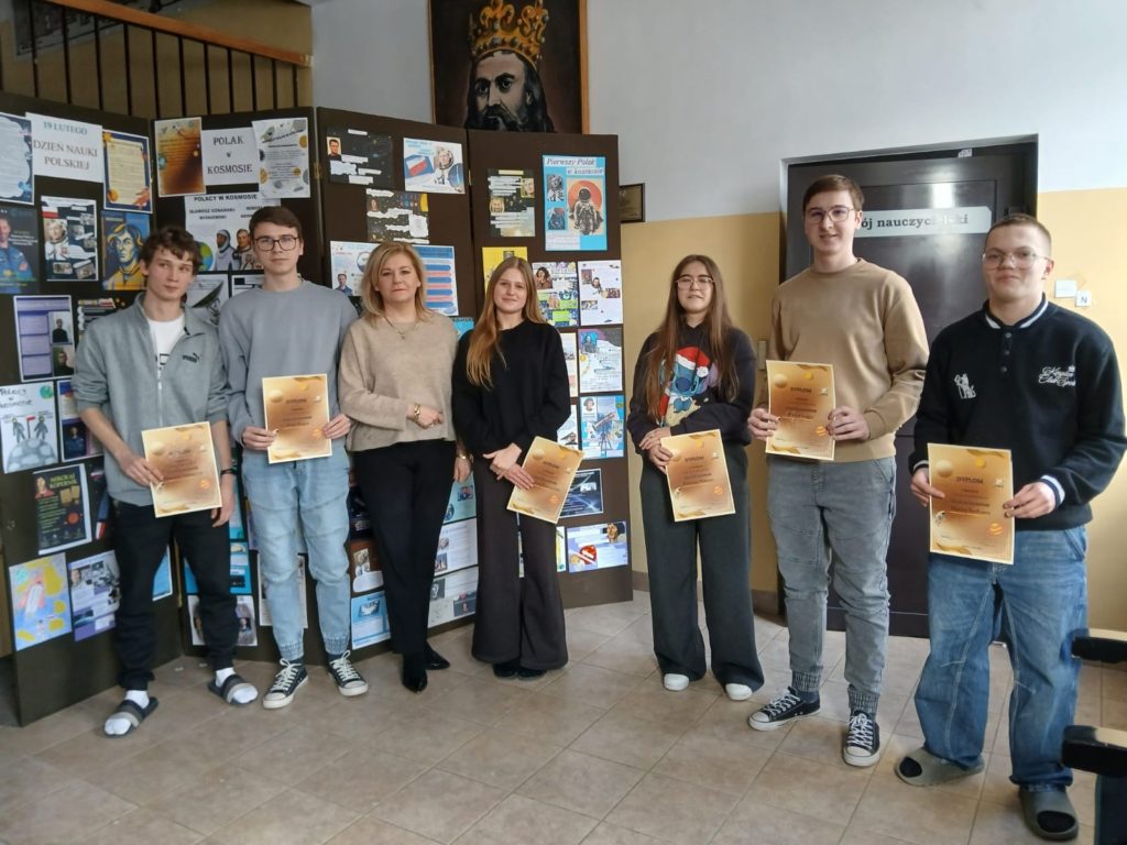 Pani Dyrektor Maria Świerczyńska wręczyła dyplomy zwycięzcom konkursu wiedzy o dokonaniach Polaków w podboju kosmosu.