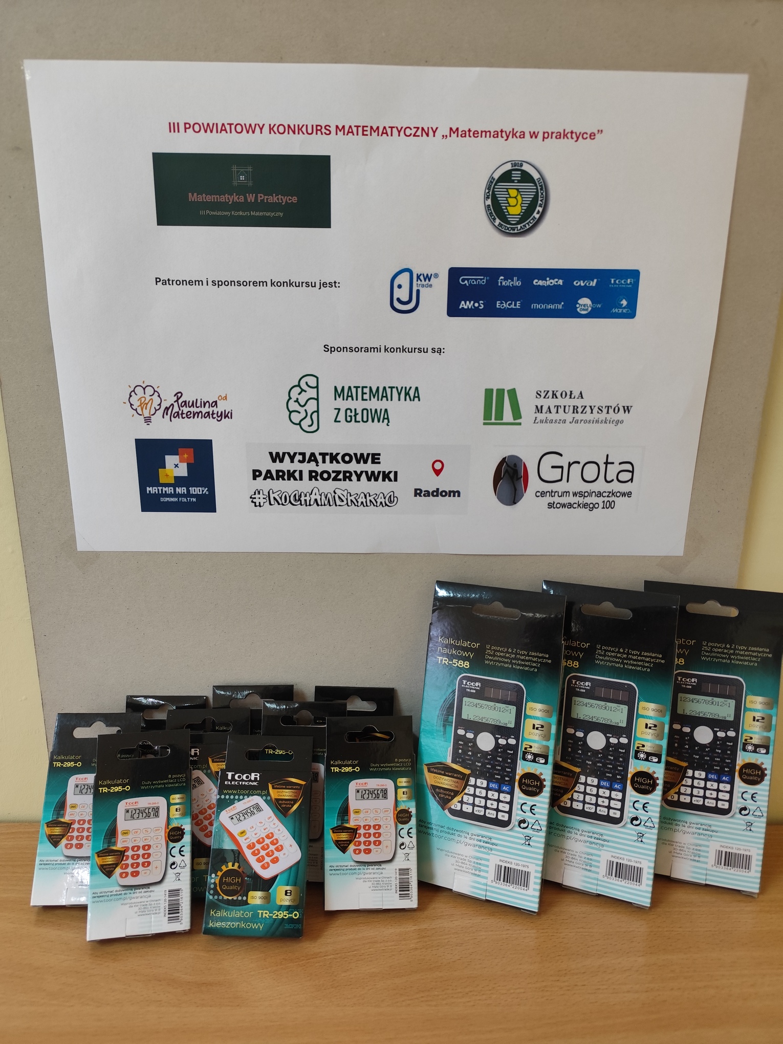 Patronat nad wydarzeniem objęła firma KW trade Sp. z o.o. z siedzibą w Krakowie, która ufundowała również kalkulatory naukowe dla najlepszych uczestników.